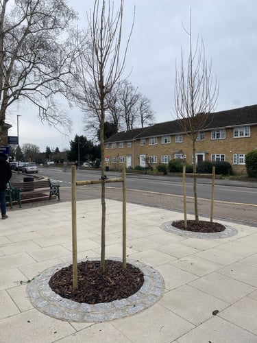 You'll notice the two original benches have been re-instated and there are two new additional benches on the way as residents asked for more seating in the area. We have a lovely new village sign mounted on an oak post which depicts St Judes Church at the top and cricket being played on the Green at the bottom. There's also an information board which will show local walks and places of interest - ideal for the many visitors we get to our village. Bike racks have also been installed at the Victoria Street end, again these were requested by residents as there is no where secure to leave a bike if you're just popping to the shops. There is power for our Christmas Tree which will be a much more accessible (and less muddy) location for it come December and lastly the two planned new trees have arrived!