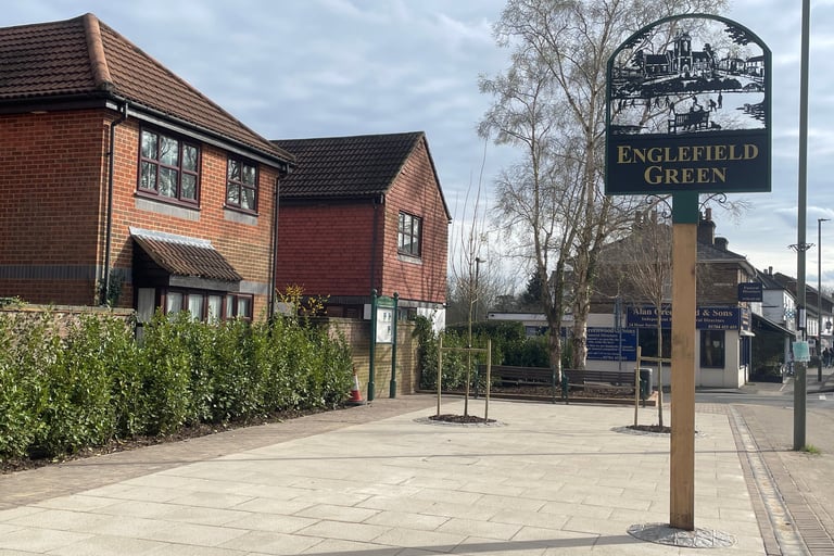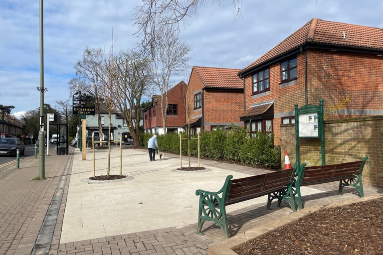 Most villages and towns in this country have a town square or similar central area around which the community sits and events take place. Our Village Green is some distance away from the shops and public transport access and so this project (which was proposed in the Neighbourhood Plan) entailed refurbishing the area on the North side of St Jude's Road in between Victoria St and Alexandra Road to create just such a space. The trees and hedges had become very overgrown, blocking light from the homes behind and the space was redesigned to allow for a safer and more suitable environment and generally creates a more useable area in the centre of our Village - we now have a Village Square!